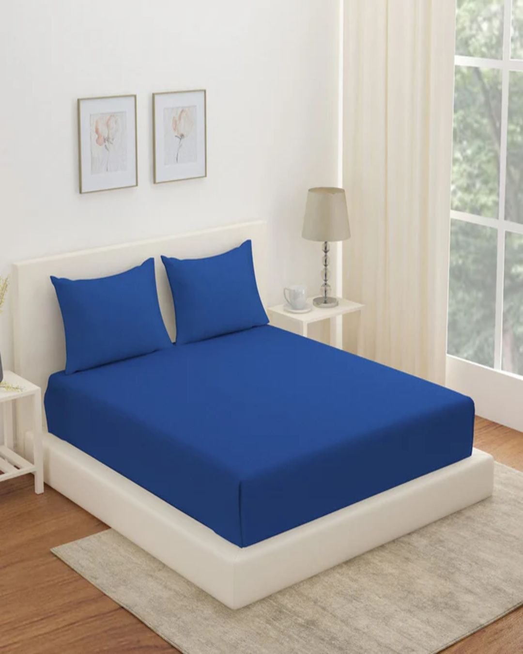 • Modern Elegance – Royal blue fitted bedsheet with a sleek, snug fit and matching pillow covers for a minimalist yet rich look.